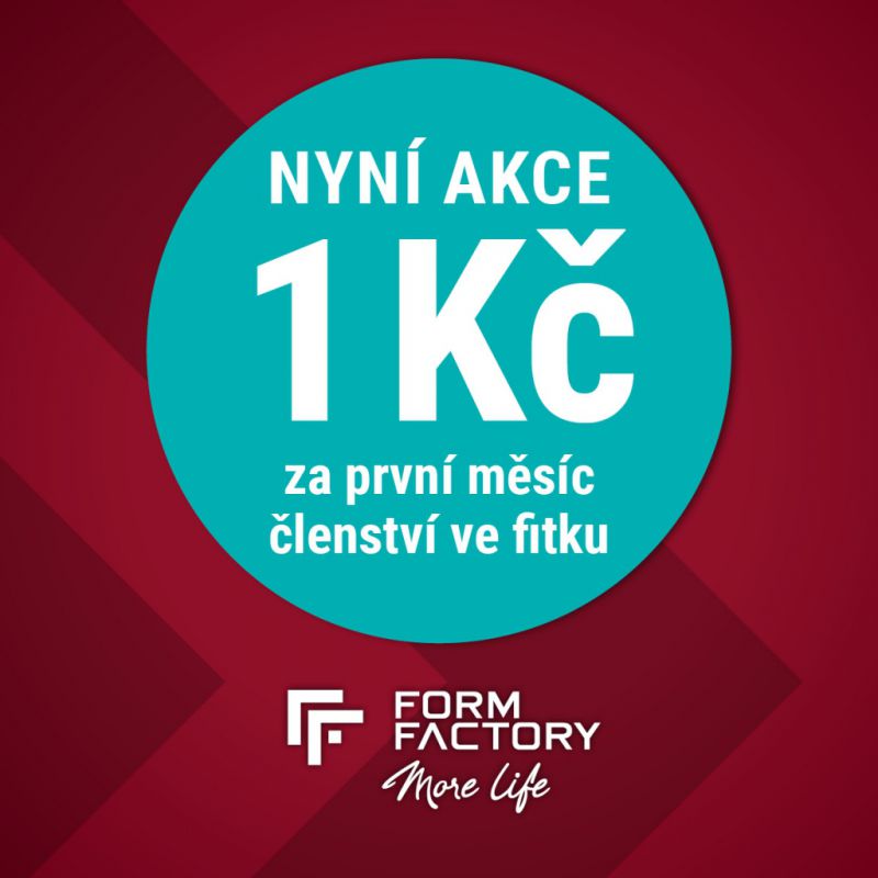 Využijte jedinečnou příležitost začít cvičit ve Form Factory s akcí První měsíc za 1 Kč. Při koupi ročního členství Pro nebo Pro Age tak získáte první plný měsíc za symbolickou cenu a otevře se vám svět pravidelného pohybu bez kompromisů.